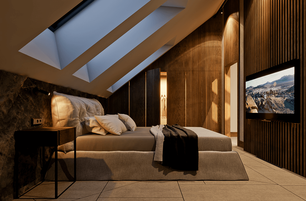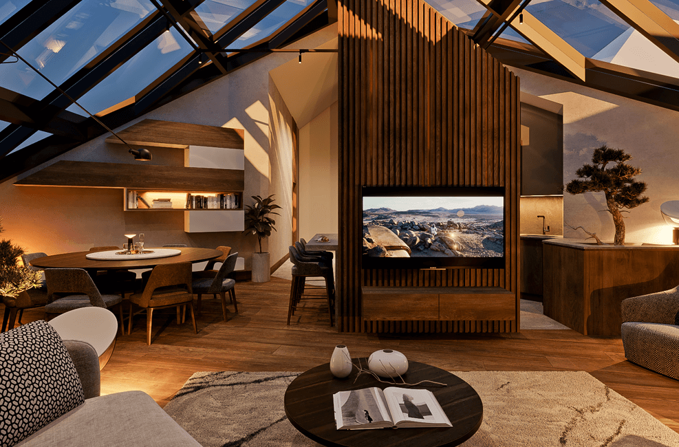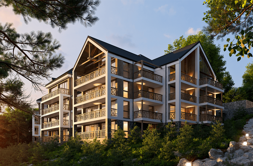 Apartamenty zostaną wykonane z materiałów najwyższej jakości, zgodnie z najnowszymi trendami. Wnętrza urządzone będą w stylu nowoczesnym z zastosowaniem naturalnych materiałów takich jak: kamień, drewno oraz liczne przeszklenia, z uwzględnieniem elementów stylu karkonoskiego. Zaprojektowane będą przez prestiżową pracownię architektoniczną Julii Kuśmierz, która otrzymała złotą statuetkę w międzynarodowym konkursie MUSE Design Awards 2019 w Nowym Jorku. Każdy z apartamentów wyposażony zostanie w kompletny aneks kuchenny, stylową łazienkę oraz przestronny balkon. W obiekcie znajdować się będzie także pomieszczenie na rowery oraz narciarnia. Z większości apartamentów rozciąga się malowniczy widok na lasy i Góry Izerskie.